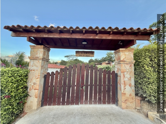 Linda Villa con una casa de 3 alcobas en la parte alta que se conserva muy bien, amplio parqueadero para vehículos, con algunos arboles frutales y con la construcción reciente de zona de fogata, un super Kiosko para disfrutar de reuniones familiares con jacuzzi, gran estar con chimenea, un amplio baño con servicio de agua caliente, barra americana con sus respectivas sillas y gran cocina con horno de leña incorporado, asador a gas, fogón, gabinetes para almacenamiento y nevera.